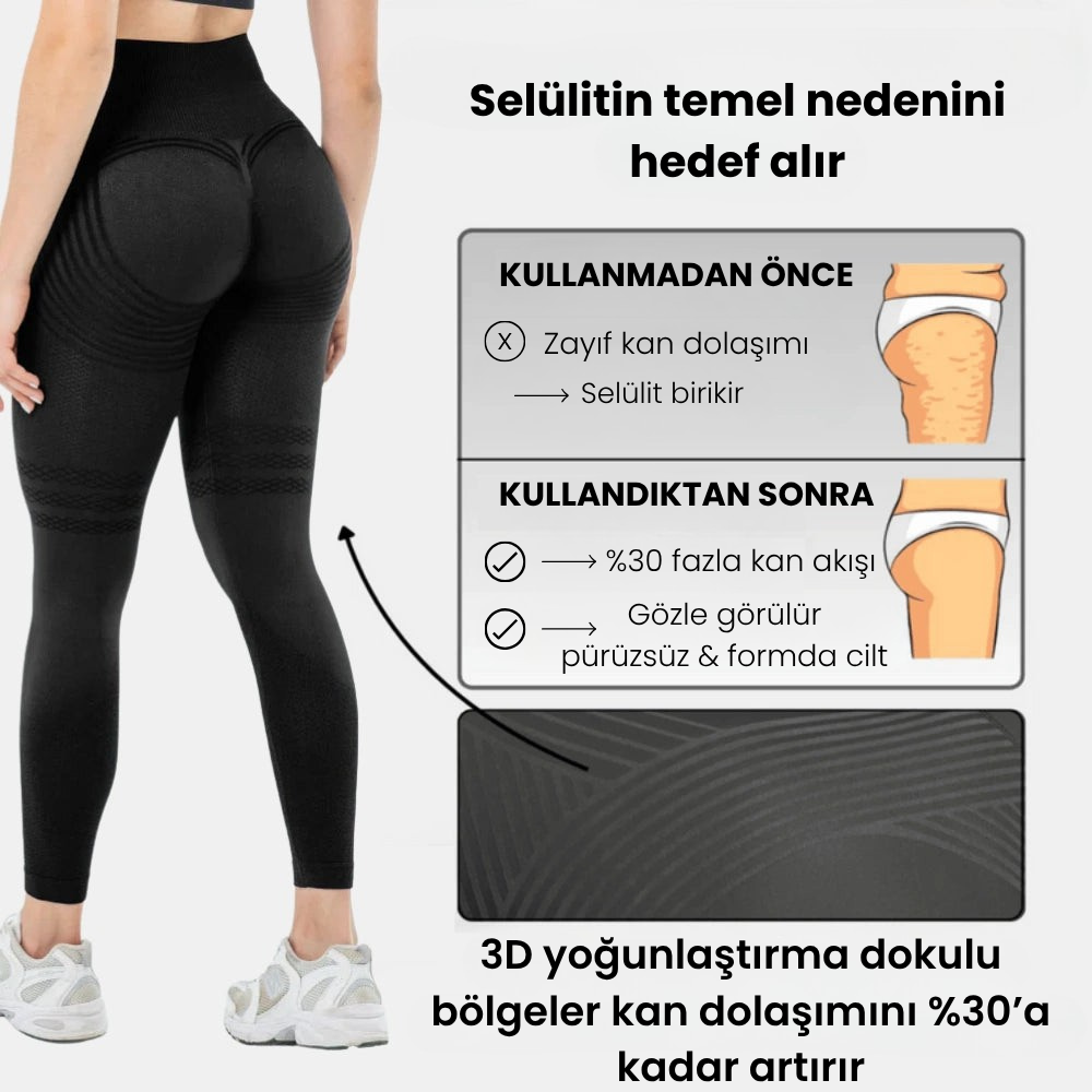 Stratejik yerleştirilen 3D yoğunlaştırma çizgileri, uyluk ve kalça bölgesini nazikçe sararak kan akışını %30'a kadar arttırı.