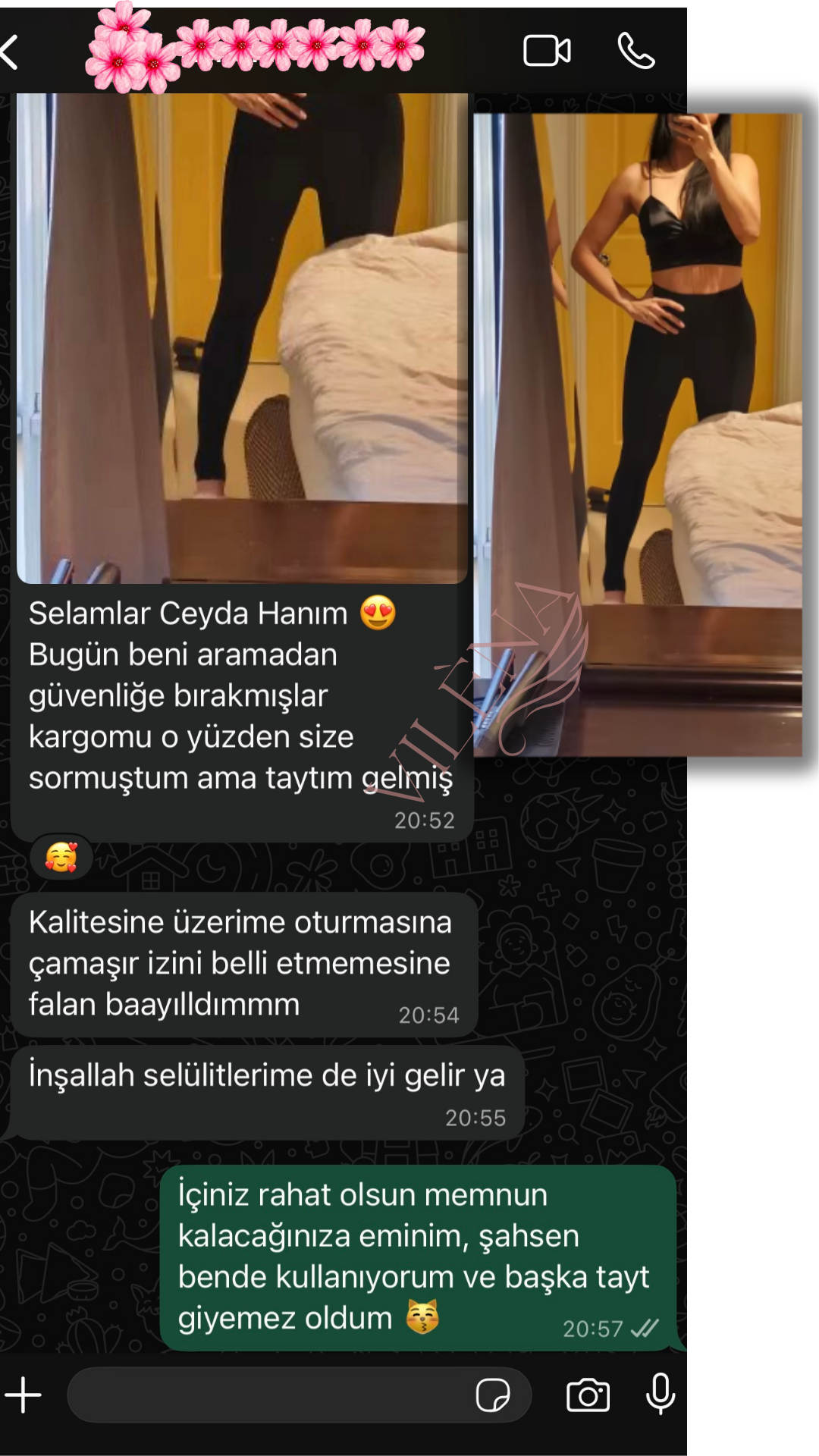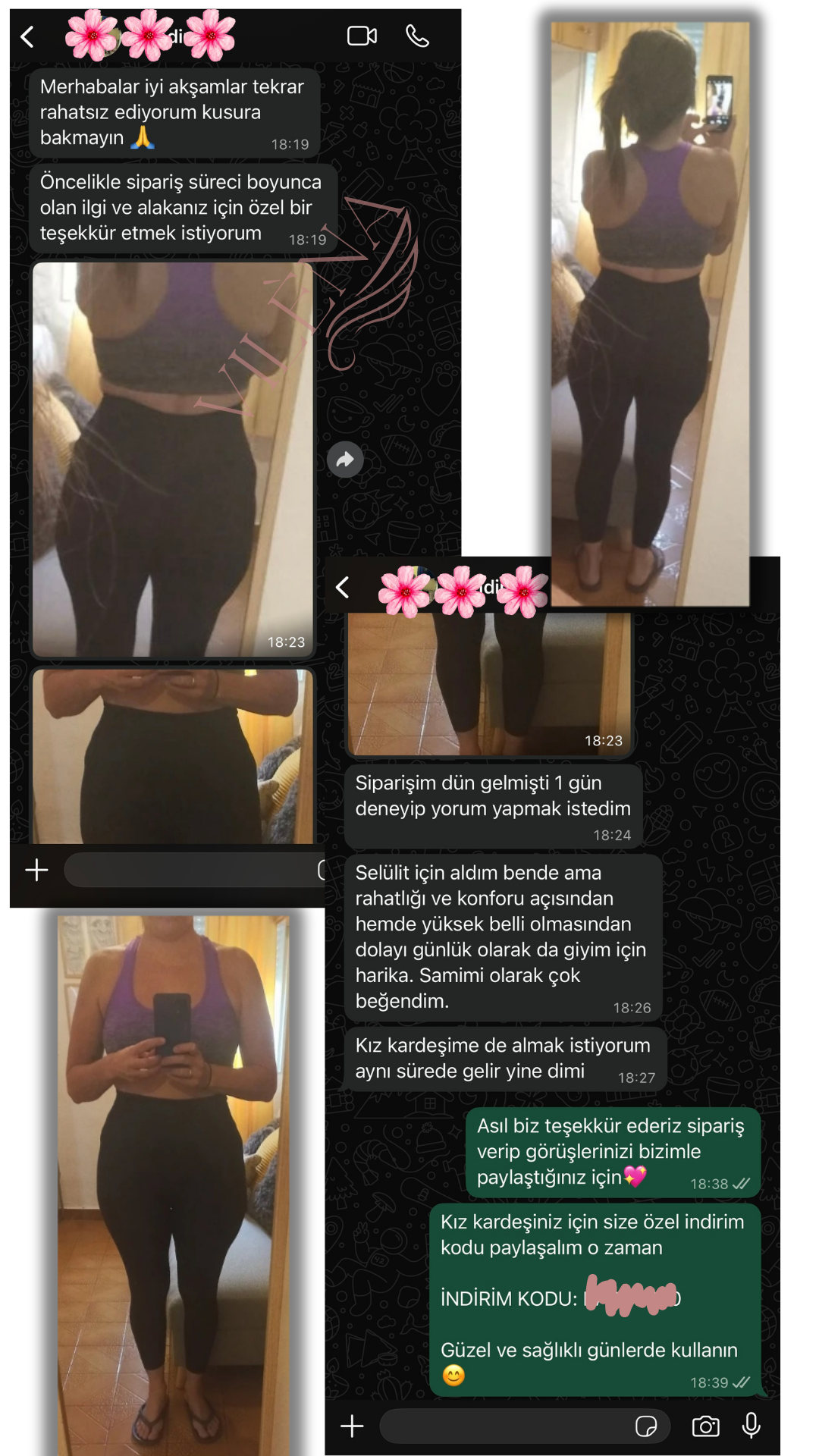Ortalama bir hareket sahibi müşterimizin daha önce yok edemediği selülitin yoğunlaştırma teknolojili tayt kullanımı sonrası durumu